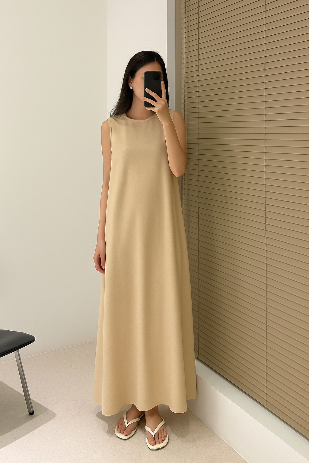 فستان عملي بلمسة فخامة، مصنوع من قماشة كريب ناعمة تنسدل بسلاسة لتعطيكي إطلالة مريحة وأنيقة بنفس الوقت.